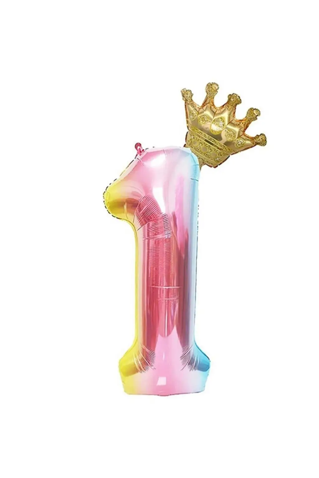 • Paket İçeriği : 1 YAŞ /34''-76 CM EBAT Gökkuşağı Renk Kral Taçlı Folyo Rakam balon.