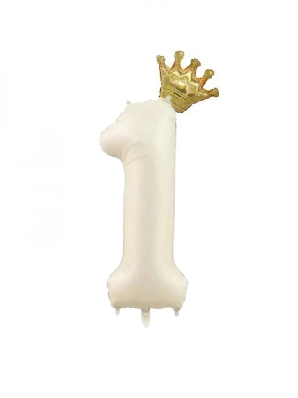 • Paket İçeriği : 1 YAŞ /34''-76 CM EBAT Krem Renk Kral Taçlı Folyo Rakam balon.