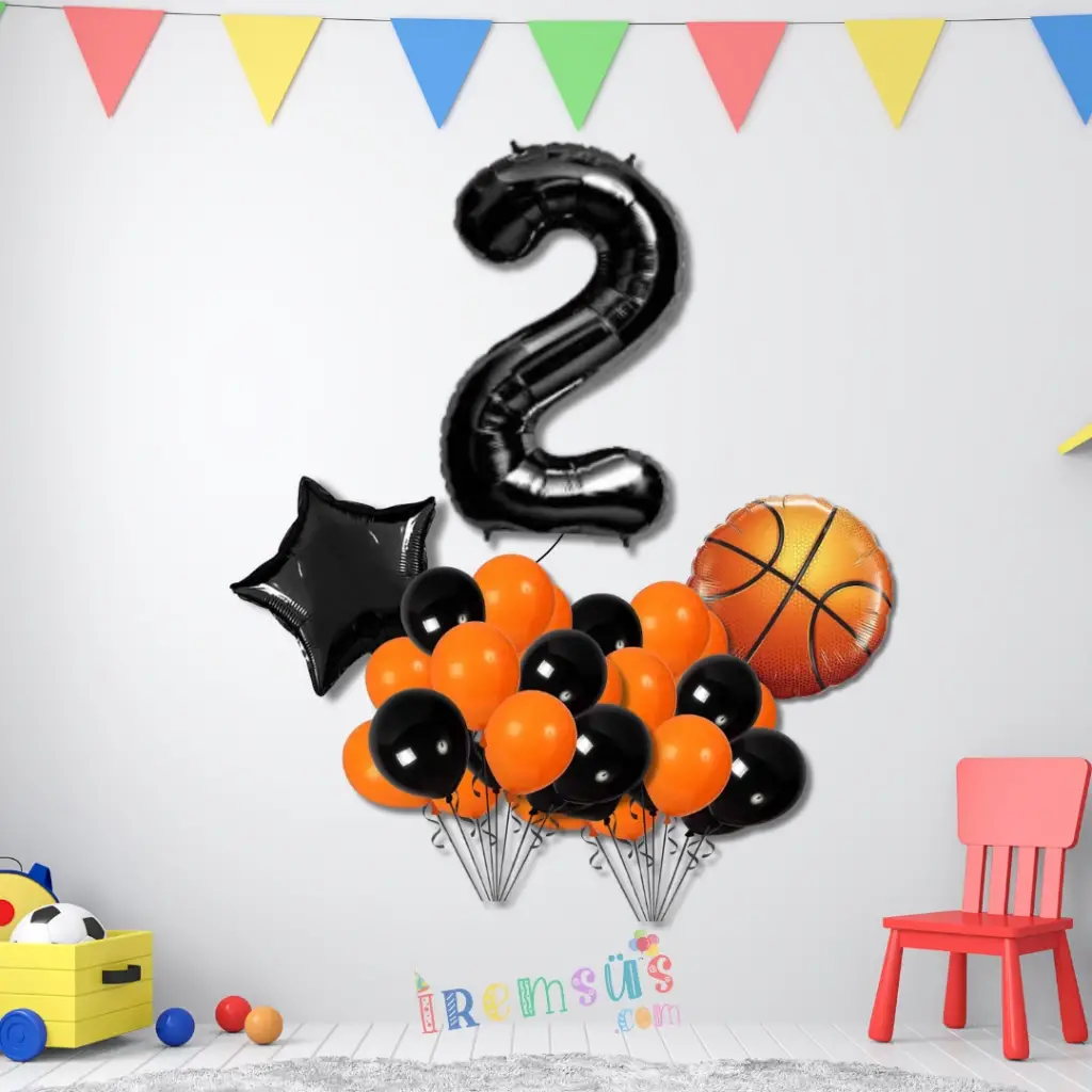 2 Yaş Doğum Günü Partisi Basketbol Tema Balon Süsleme Seti