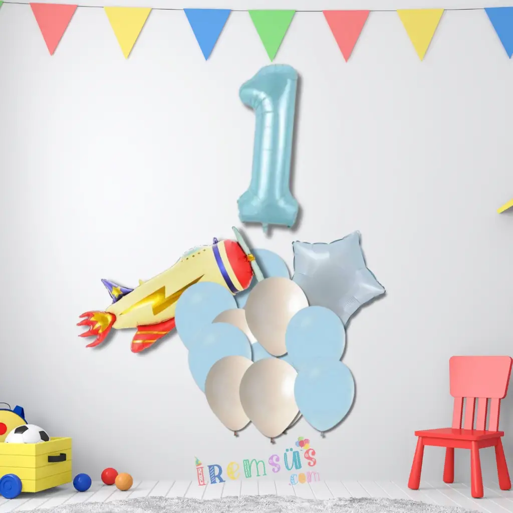 1 Yaş Doğum Günü Partisi Uçak Tema Balon Süsleme Seti