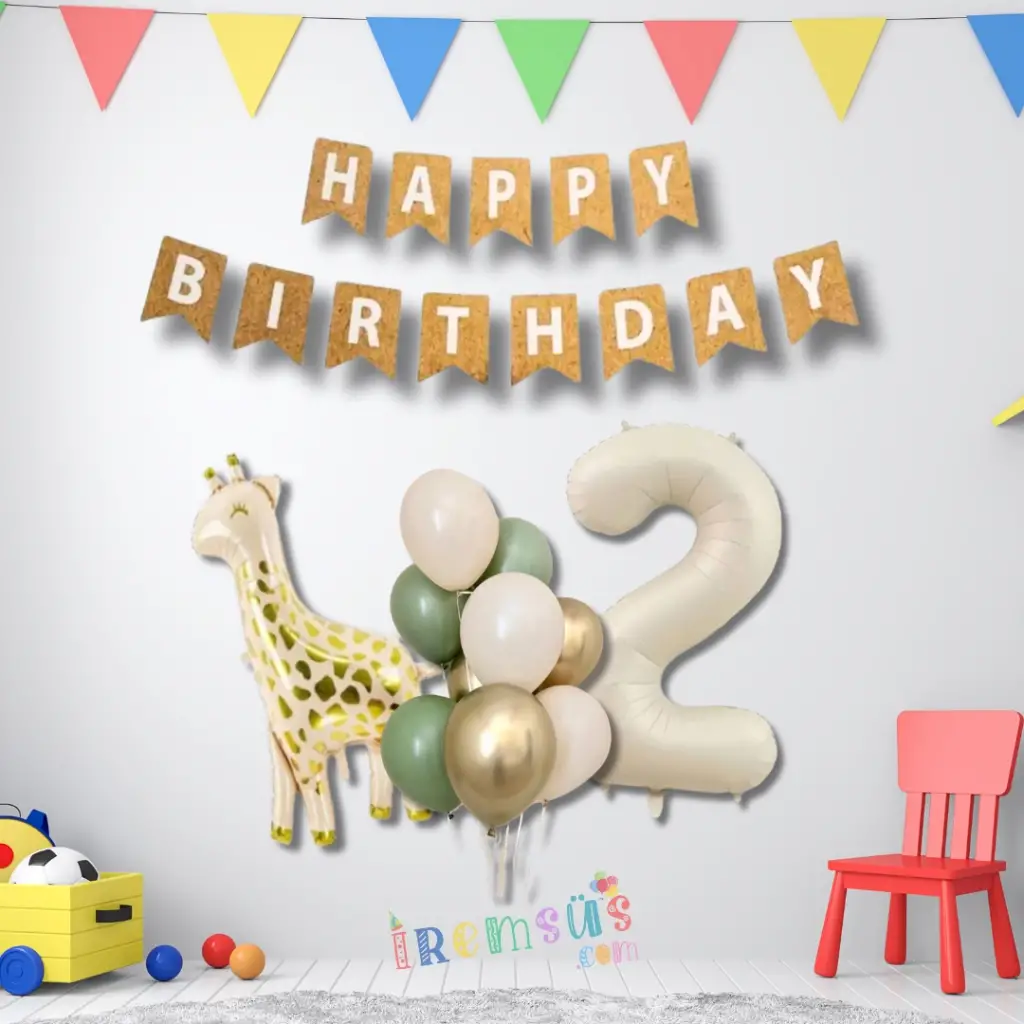 2 Yaş Doğum Günü Partisi Zürafa Tema Balon Süsleme Seti