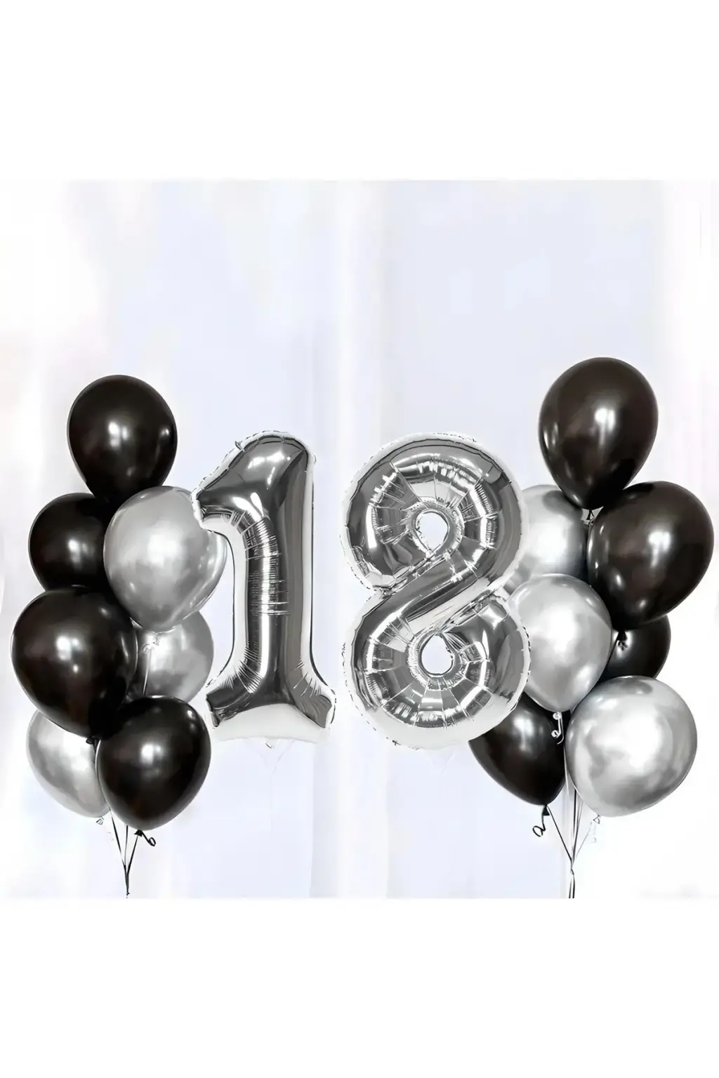 Set İçeriği 18 Yaş Siyah Gümüş Folyo Helyum Balon Seti