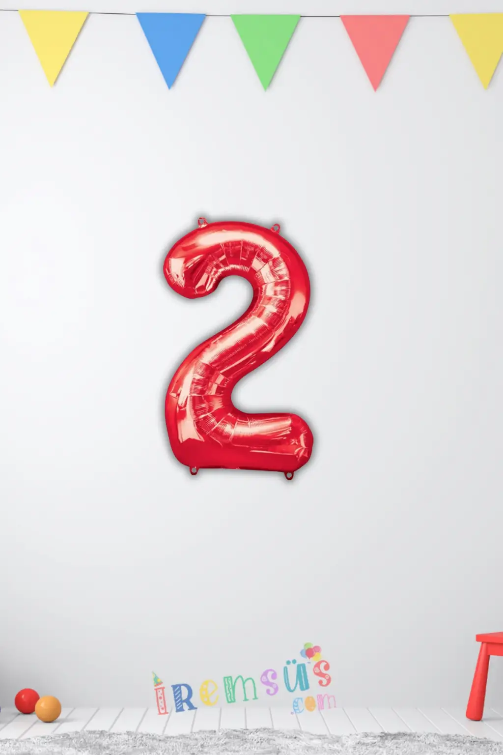 2 Rakam Kırmızı Renk Folyo Balon 40 Cm
