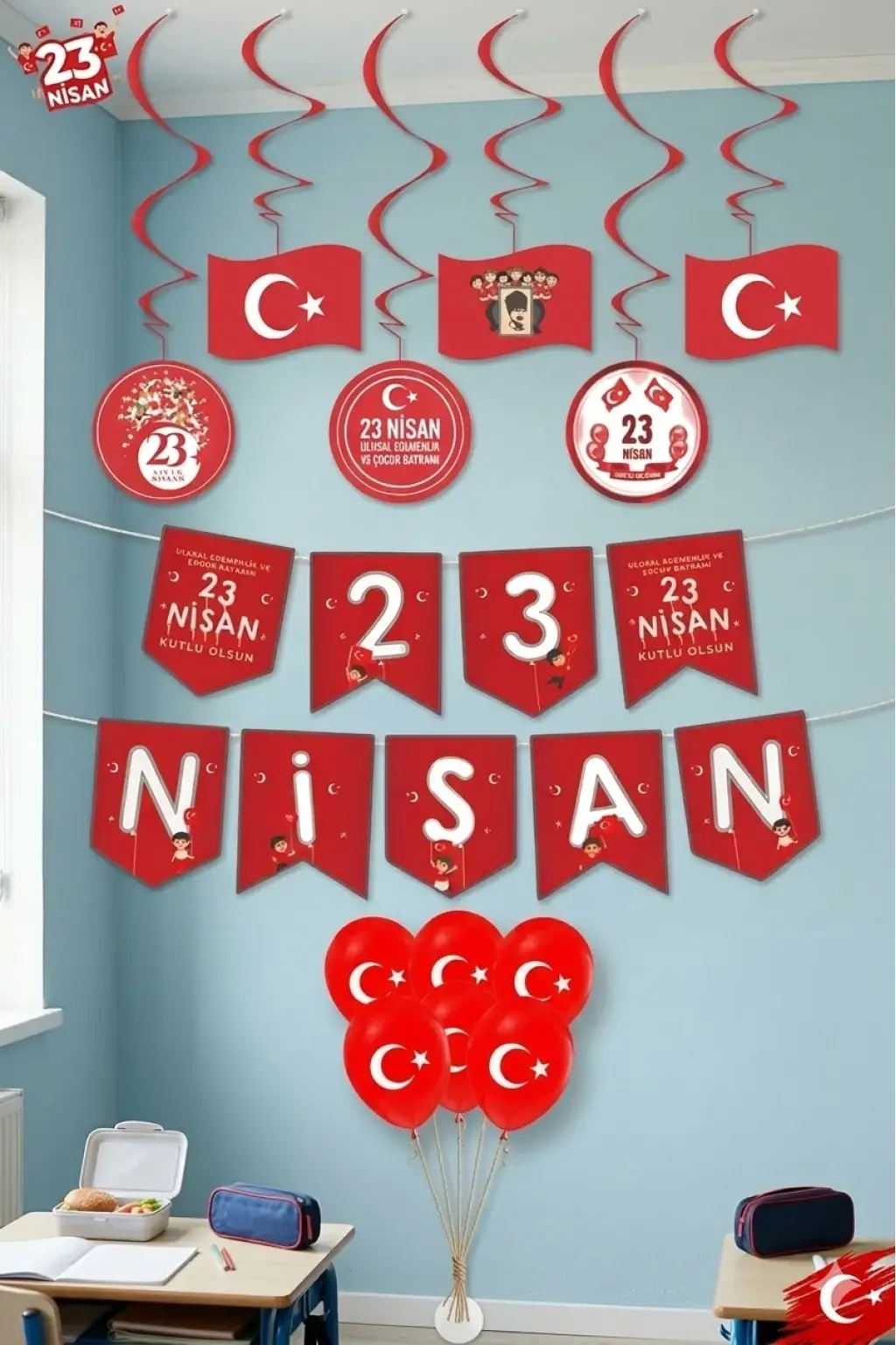 Paket içerisinde 1 set '' Zikzak Banner 23 Nisan '' bulunmaktadır.