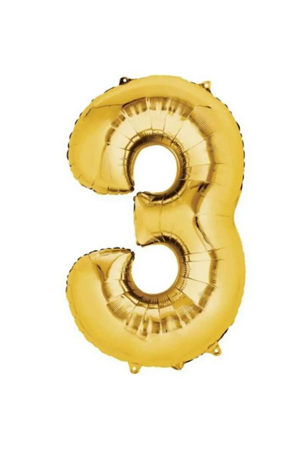 3 Yaş Doğum Günü Partisi Gold Renk Folyo Balon 16" 36 Cm 3 Rakam Folyo Rakam Balon Altın Konsept