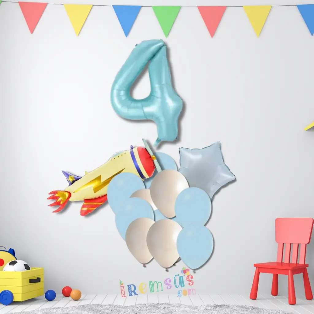 4 Yaş Doğum Günü Partisi Uçak Tema Balon Süsleme Seti