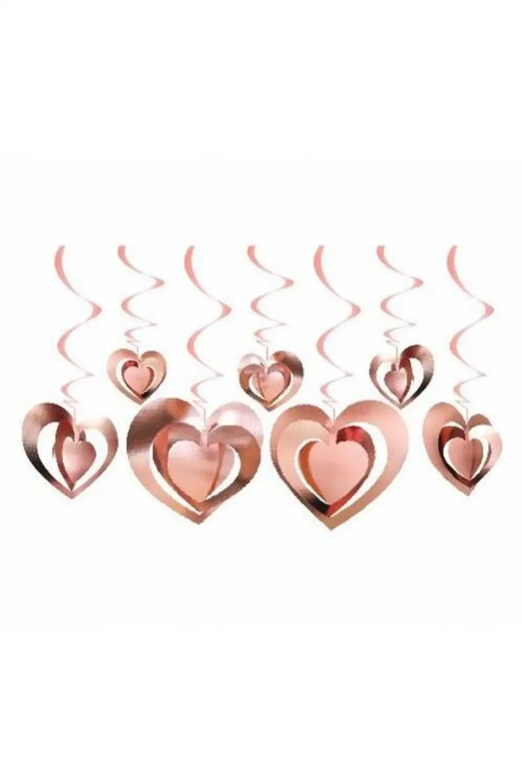 3D Görünümlü Tavan Sarkıt Rose Gold Renk Kalp Süs 12'li Sevgili Sürprizi Süslemesi