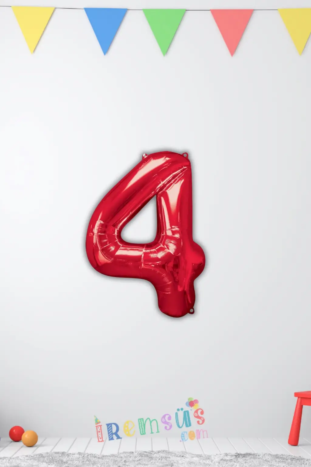 4 Rakam Kırmızı Renk Folyo Balon 40 Cm