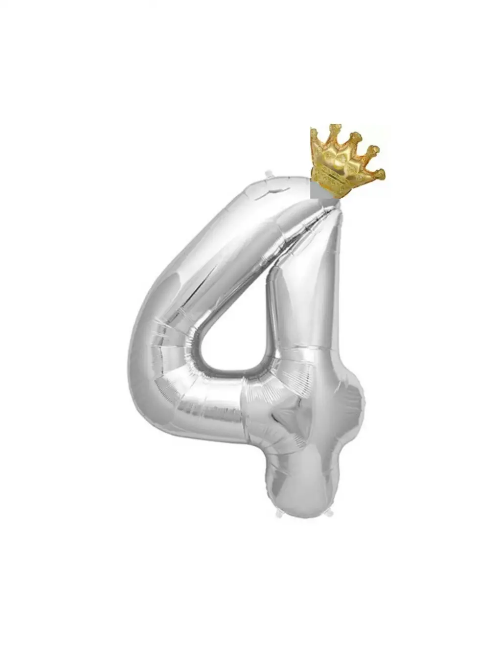 4 Yaş Doğum Günü Kral Taçlı Gümüş Renk Rakam Folyo Balon 4 Rakamı Folyo Balon Seti
