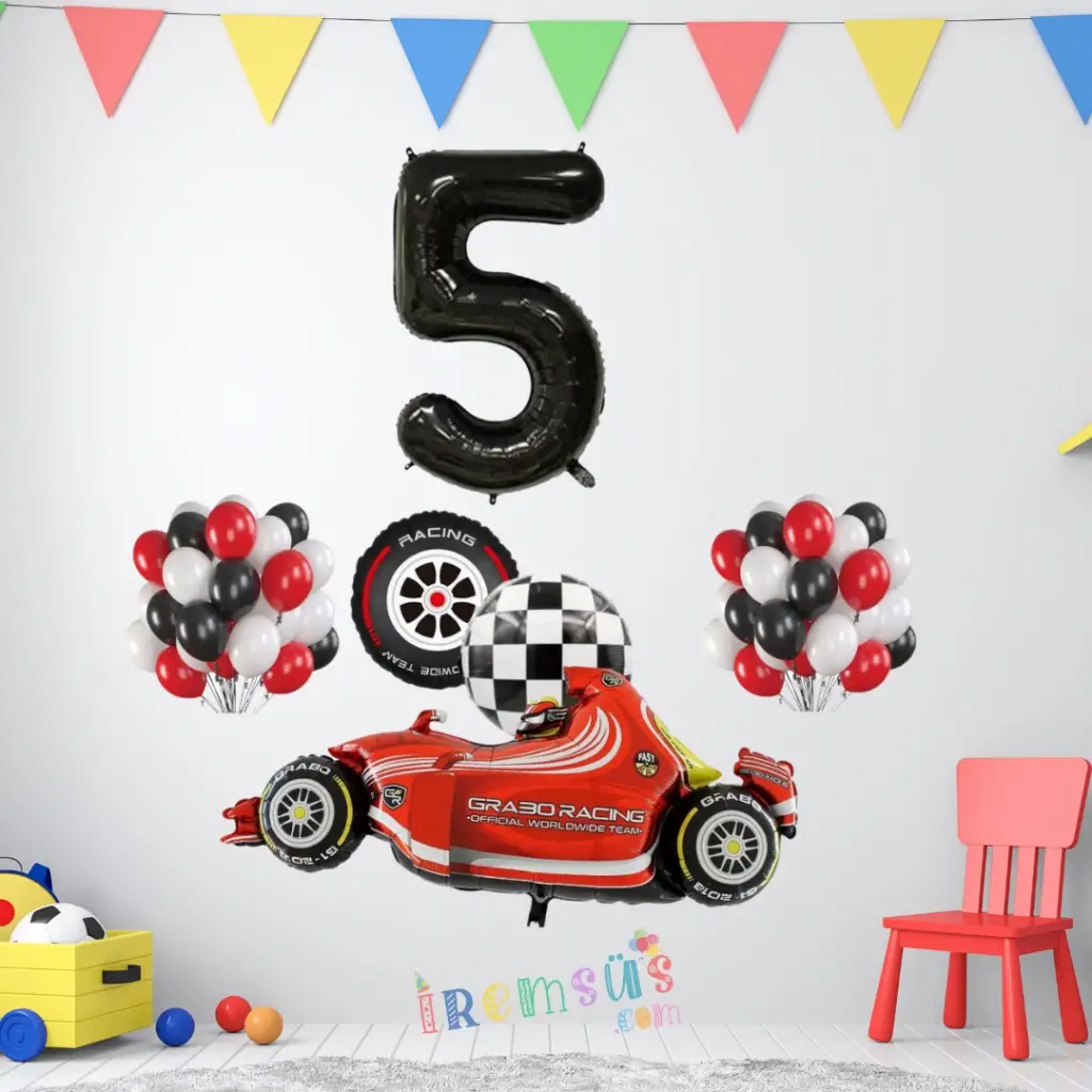 5 Yaş Doğum Günü Yarışcı Konsept Balon Süsleme Seti