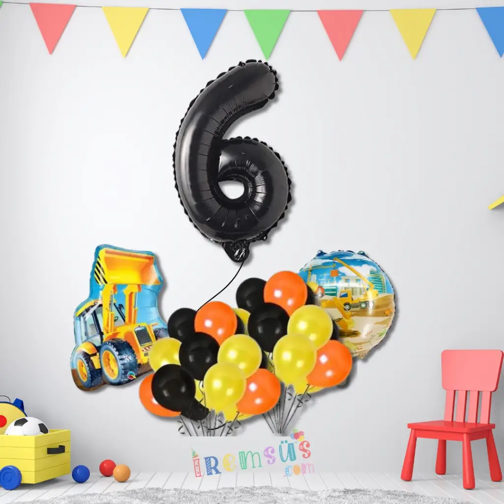 6 Yaş Doğum Günü Partisi İnşaat Tema Balon Süsleme Seti