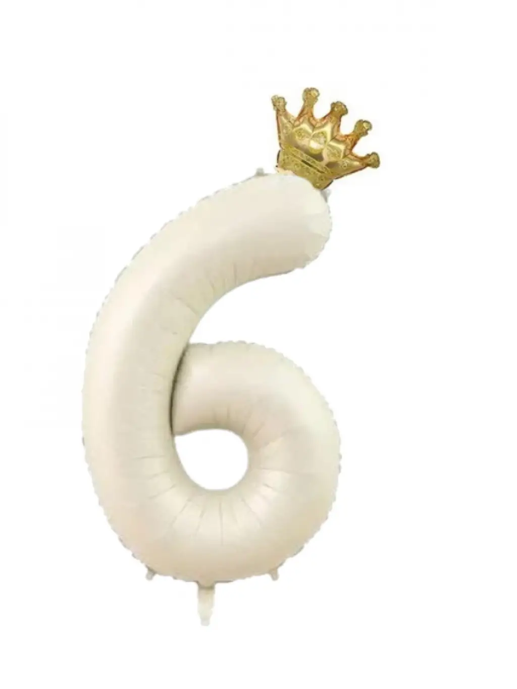 • Paket İçeriği : 6 YAŞ /34''-76 CM EBAT Krem Renk Kral Taçlı Folyo Rakam balon.