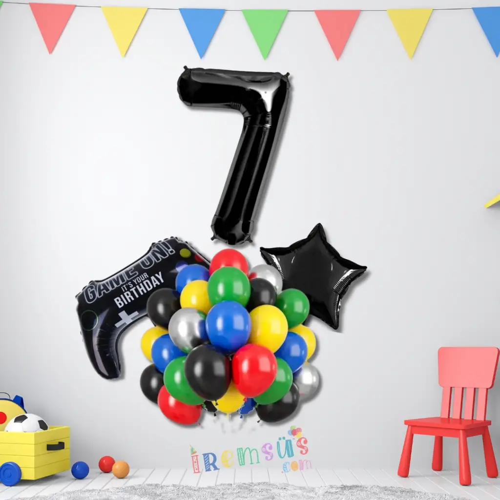 7 Yaş Doğum Günü Partisi Oyuncu Tema Balon Süsleme Seti