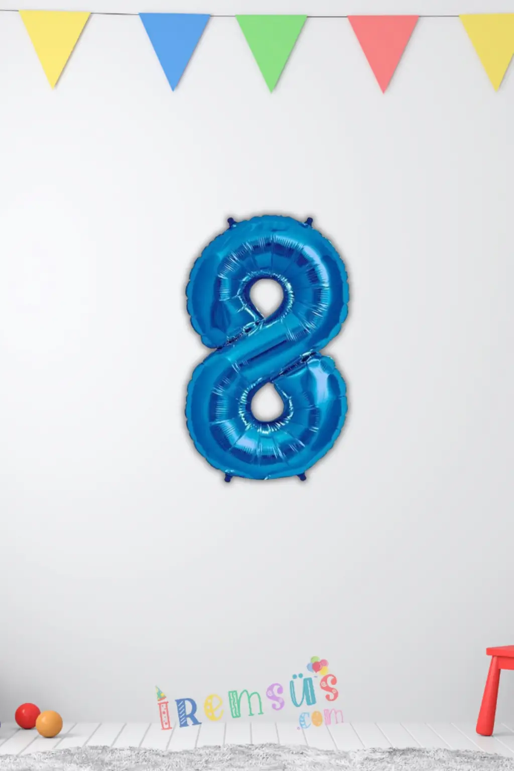 8 Rakam Mavi Renk Folyo Balon 40 Cm