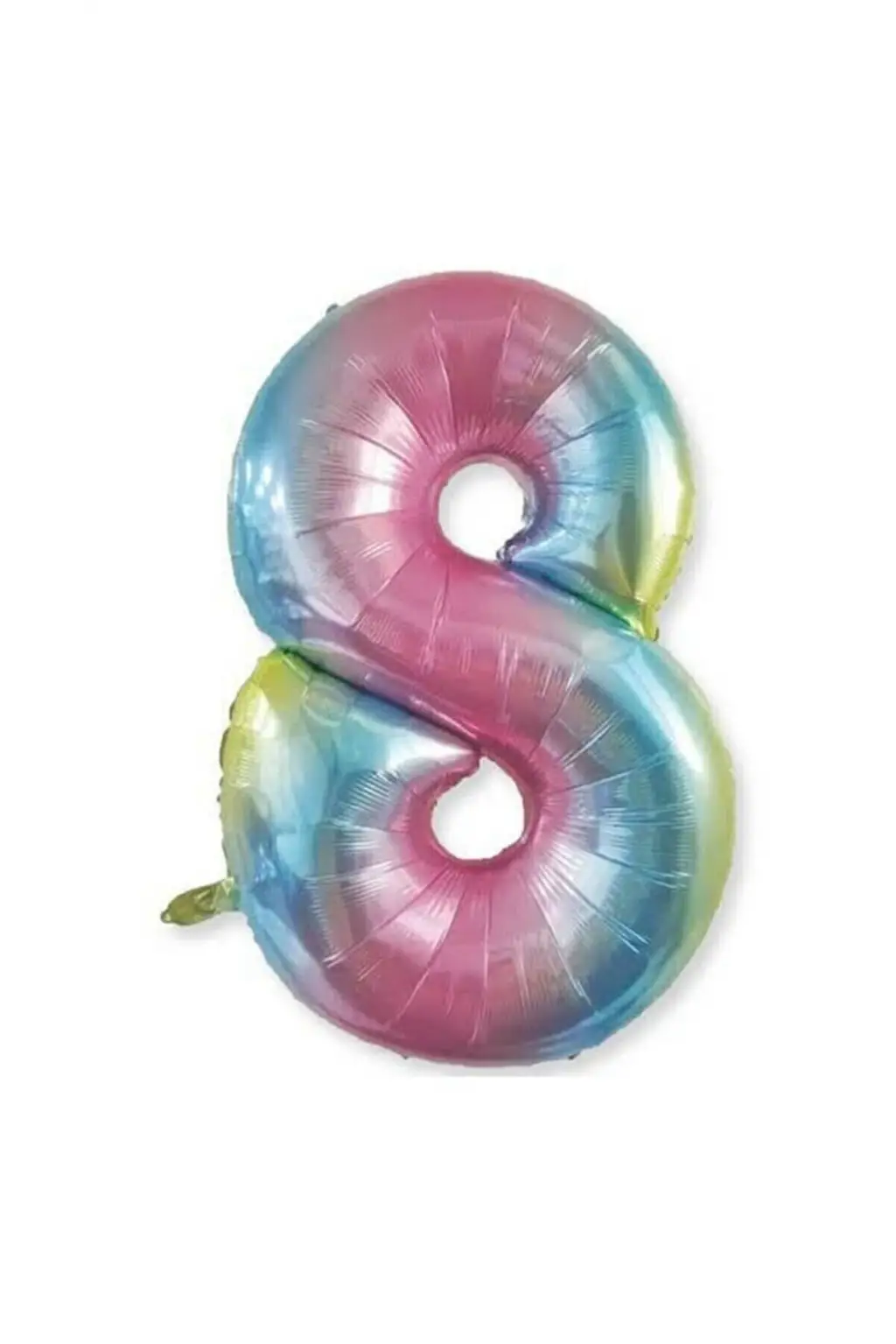 8 Yaş Doğum Günü Gökkuşağı Renkli Folyo Helyum Balon 34" 76 Cm 8 Rakamı Folyo Balon