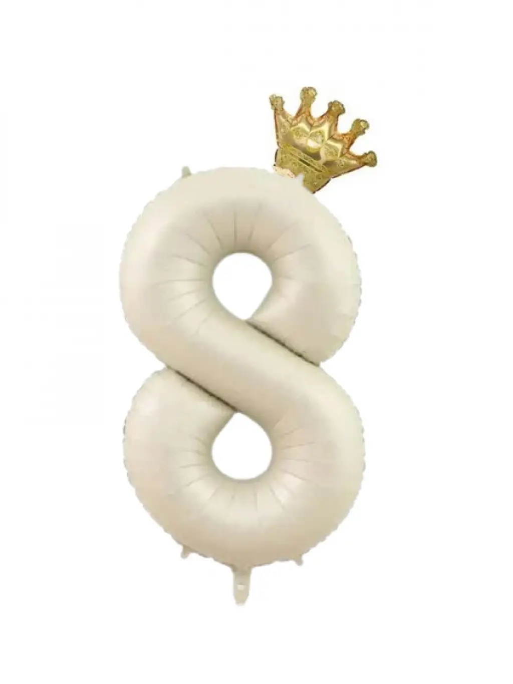 • Paket İçeriği : 8 YAŞ /34''-76 CM EBAT Krem Renk Kral Taçlı Folyo Rakam balon.