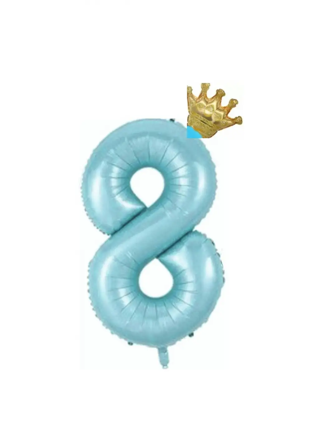 • Paket İçeriği : 8 YAŞ /34''-76 CM EBAT Mavi Renk Kral Taçlı Folyo Rakam balon.