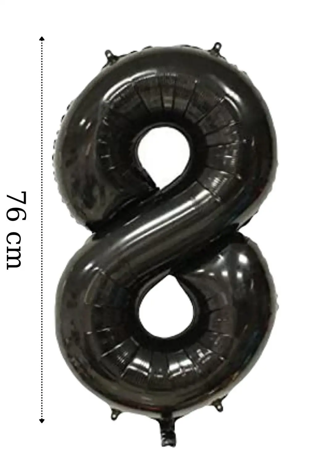 • Paket İçeriği : 8 YAŞ /34''-76 CM EBAT Siyah Renk Folyo Rakam balon.