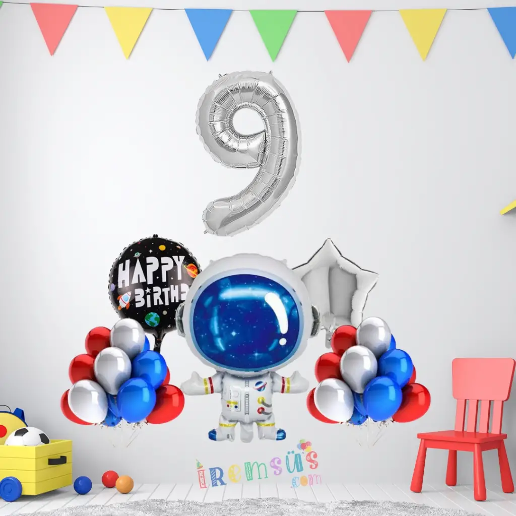 9 Yaş Doğum Günü Uzay Konsept Balon Süsleme Seti