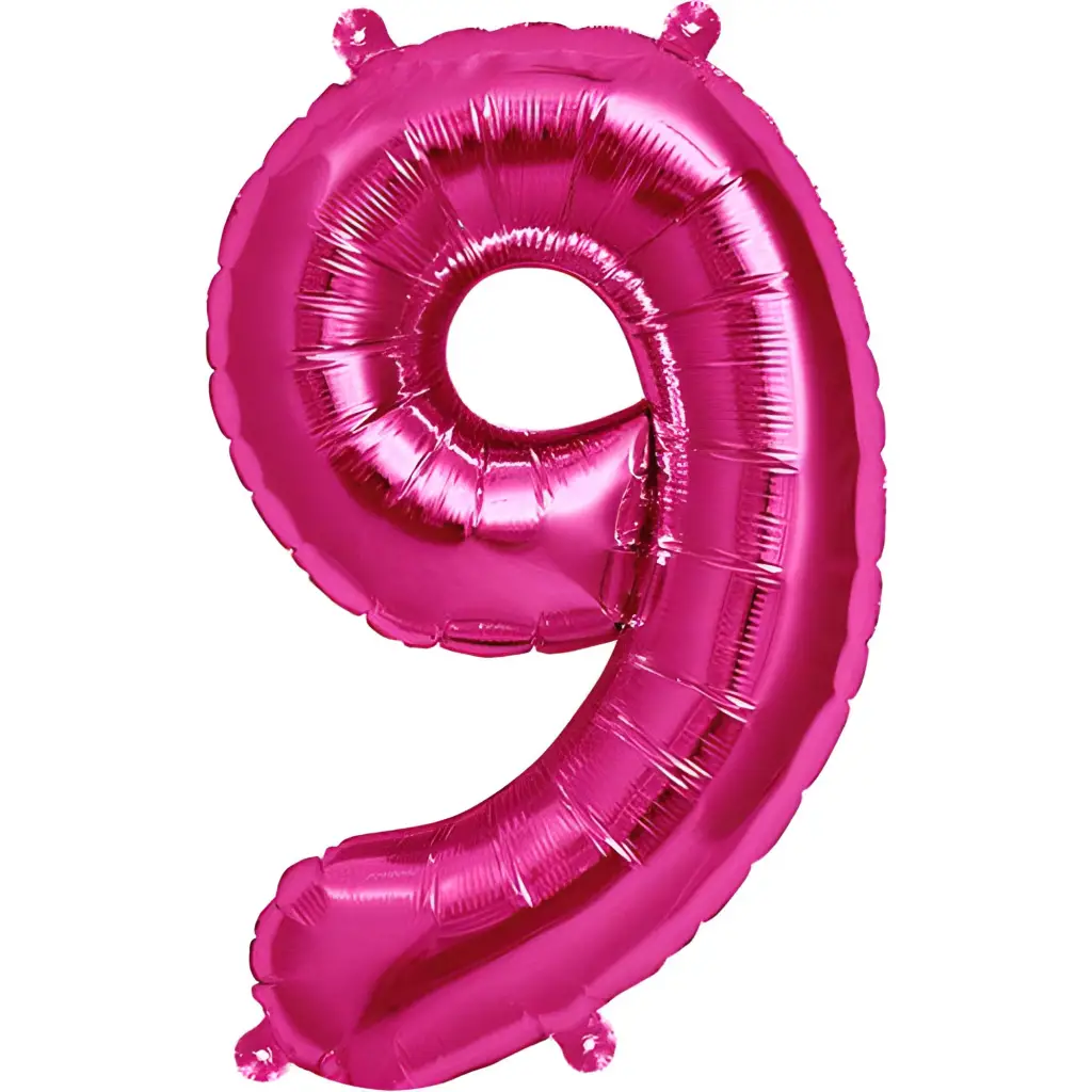 9 Yaş Doğum Günü Partisi Pembe Renk Folyo Balon 16" 36 Cm 9 Rakam Folyo Balon Pembe Konsept