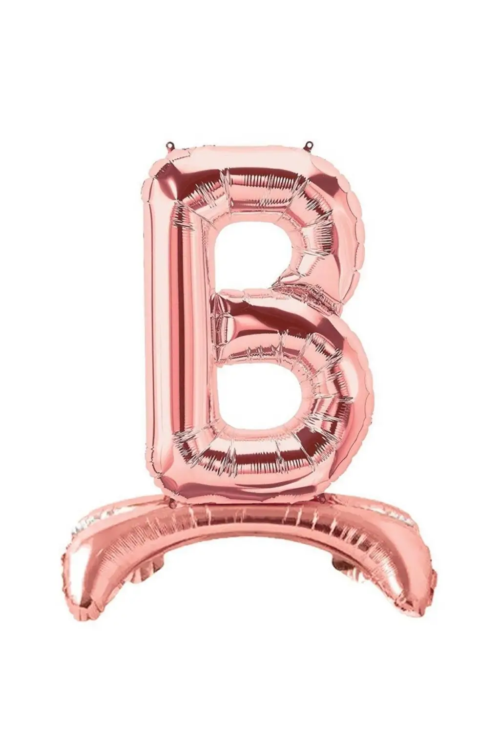 B Harfi Doğum Günü Rose Renk Folyo Ayaklı Balon 32" 70 Cm B Harf Folyo Balon Rose Konsept