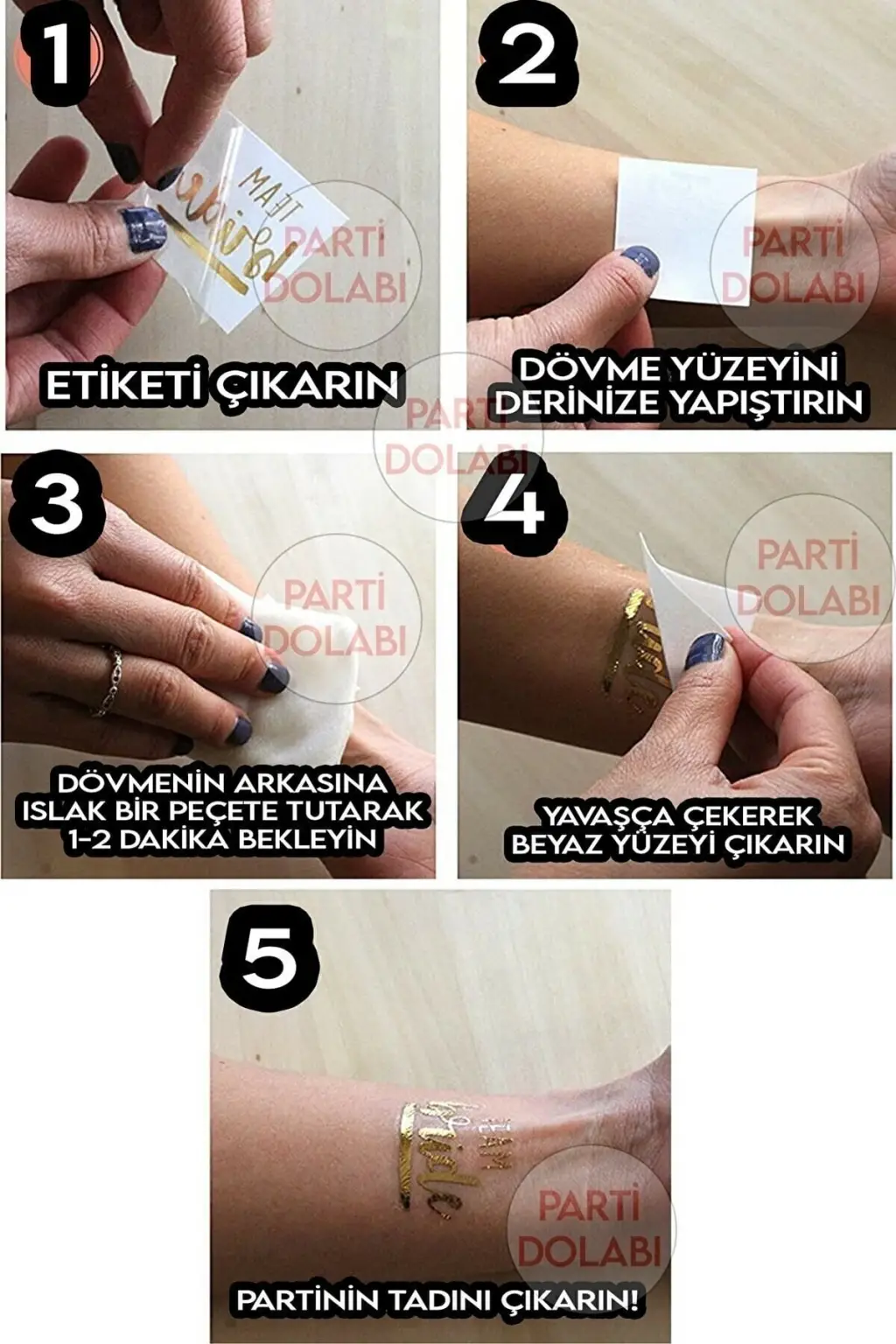 Team bride bride geçici dövme Uygulaması çok kolay ve keyiflidir. 1 adet bride 5 adet team bride bulunur.