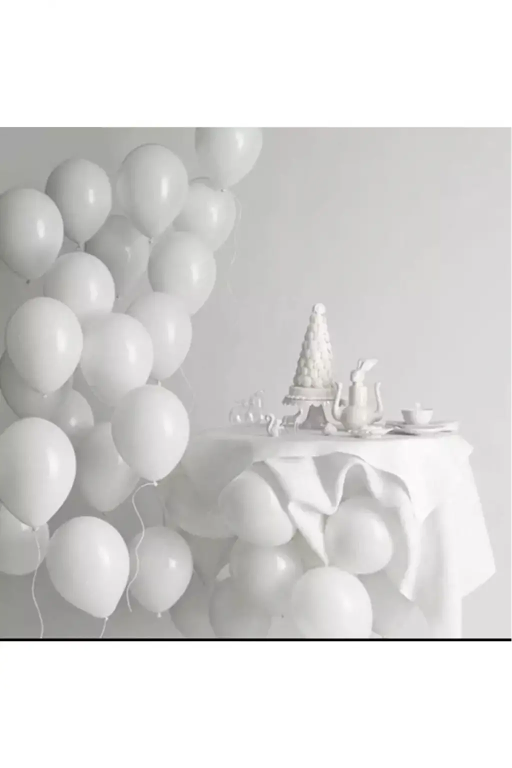 Beyaz Renkli Pastel Ton Lateks Balon 10 Adet Beyaz Konsept Doğum Günü Süsleme Balonu