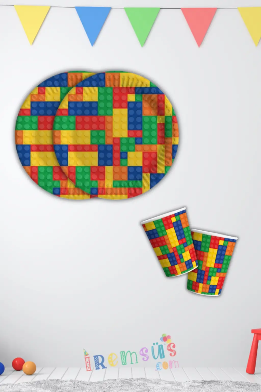 Bloklar Konsept Doğum Günü Partisi Karton Tabak Bardak Seti 8 Li Blok Tema Parti Tabağı