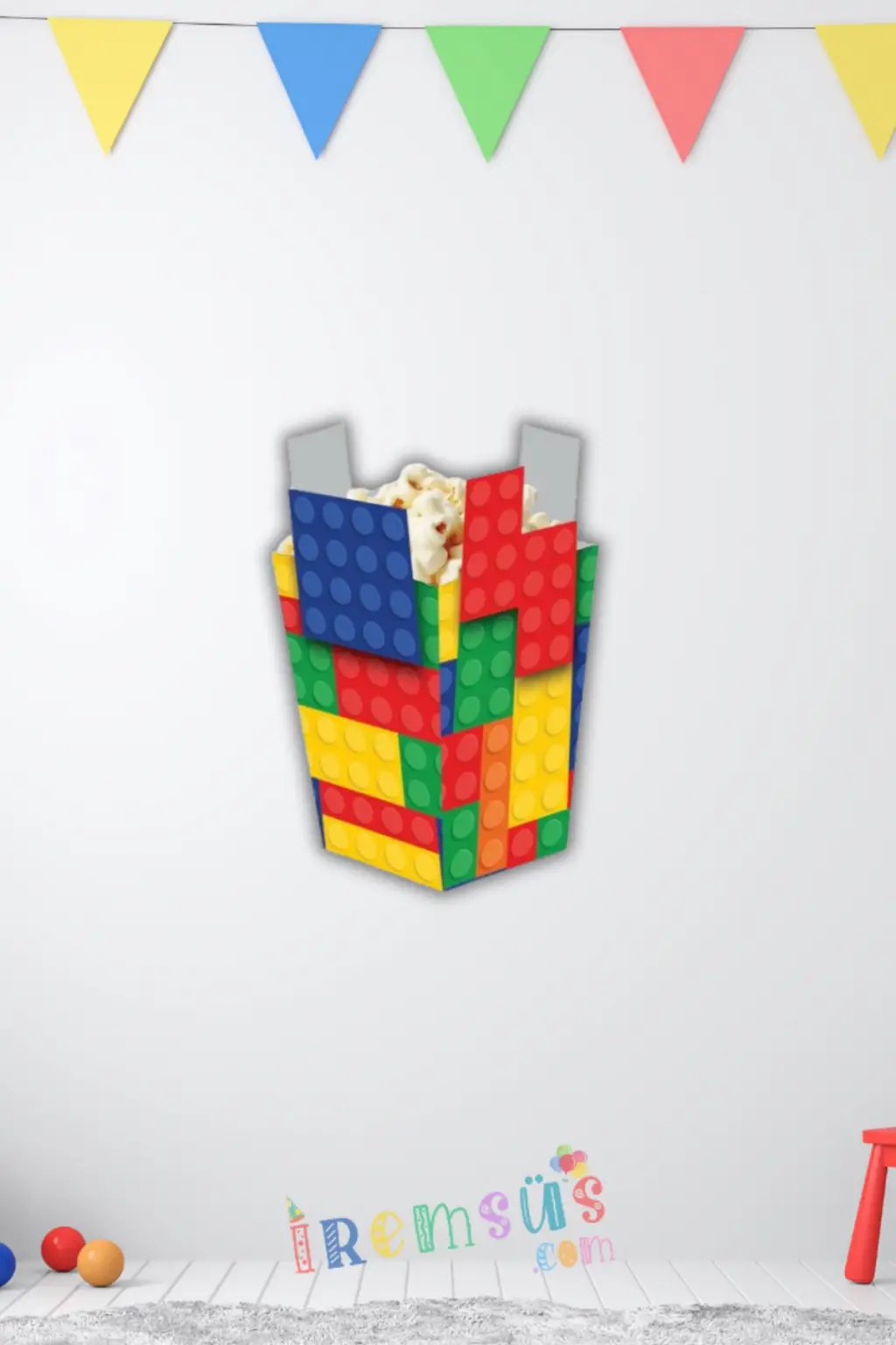 Bloklar Konsept Doğum Günü Partisi Mısır Kutusu 8li Blok Baskılı Popcorn Kutusu Süsleme