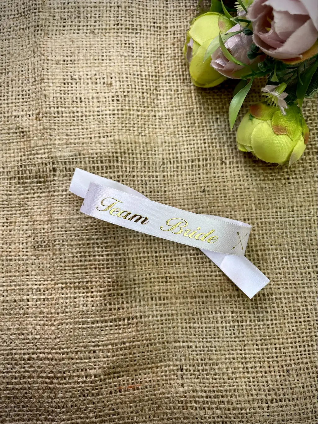 Team Bride yazılı Nedime bilekliklerinde ise yazının kendisi simli yapıya sahiptir. ve Beyazdır.
