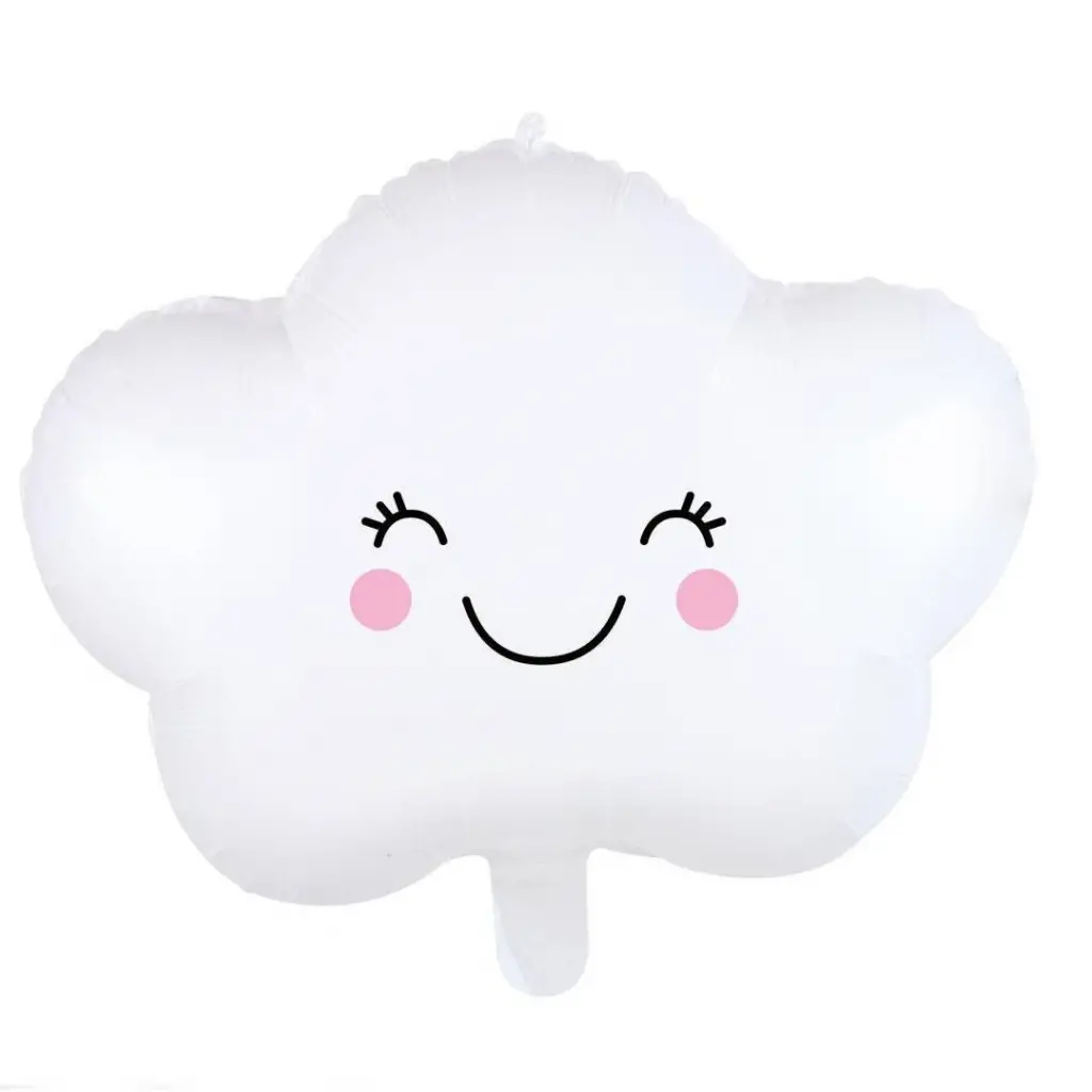 Bulut Şeklinde Beyaz Renk Gülen Yüz Folyo Helyum Balon Yeni Doğum Süslemesi