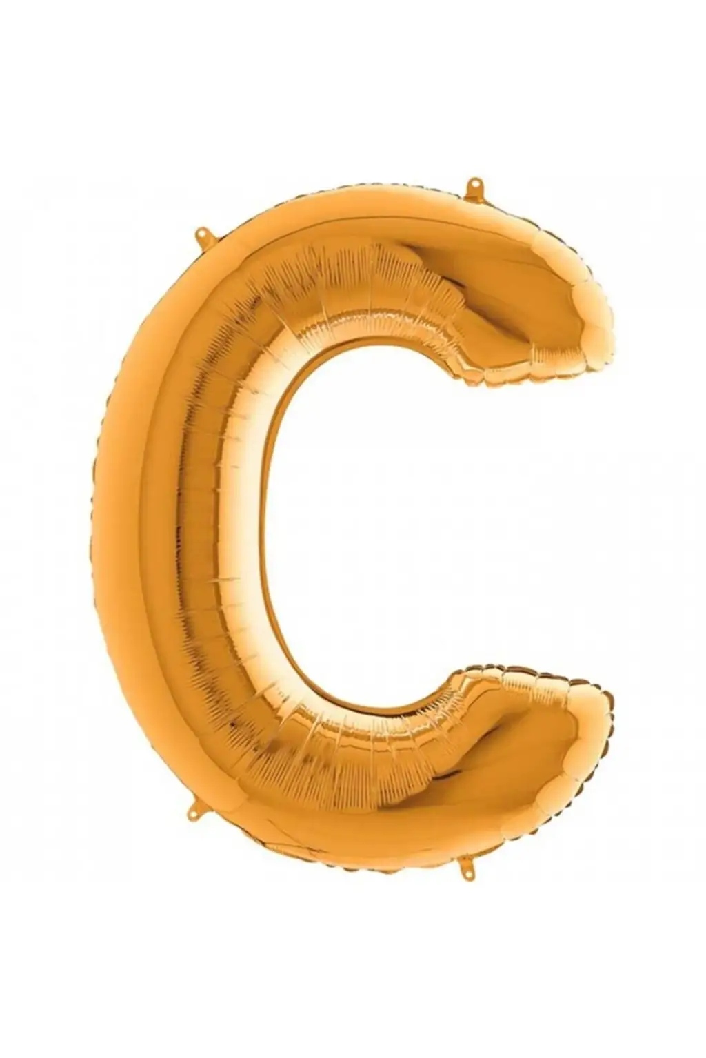 C-Ç Harfi Doğum Günü Gold Renk Folyo Helyum Balon 34" 76 Cm C-Ç Harf Folyo Balon Gold Konsept