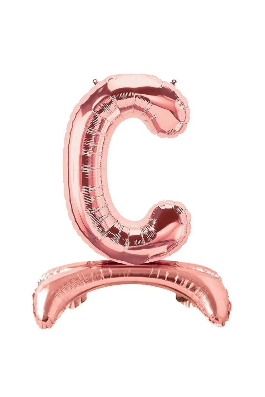 C-Ç Harfi Doğum Günü Rose Renk Folyo Ayaklı Balon 32" 70 Cm C-Ç Harf Folyo Balon Rose Konsept