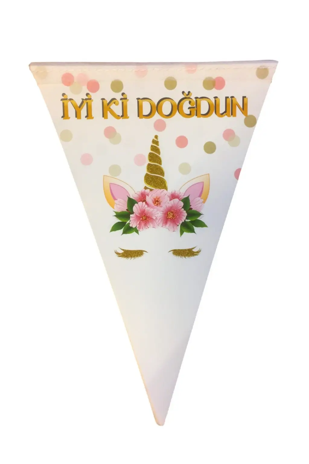 Çiçekli Unicorn Konsept Doğum Günü Partisi Üçgen İyiki Doğdun Flama 2mt Çiçekli Unicorn Masa Süsü