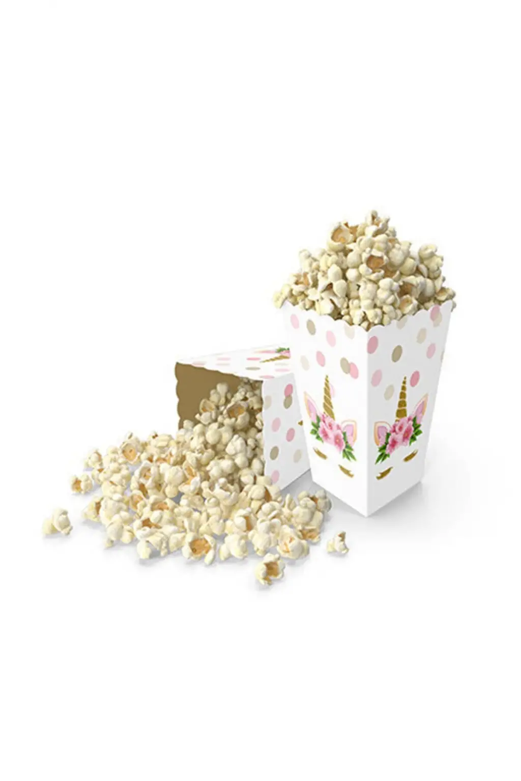 Unicorn Konsept Doğum Günü Partisi Popcorn Mısır Kutusu 8 li Unicorn Tema Süslemesi