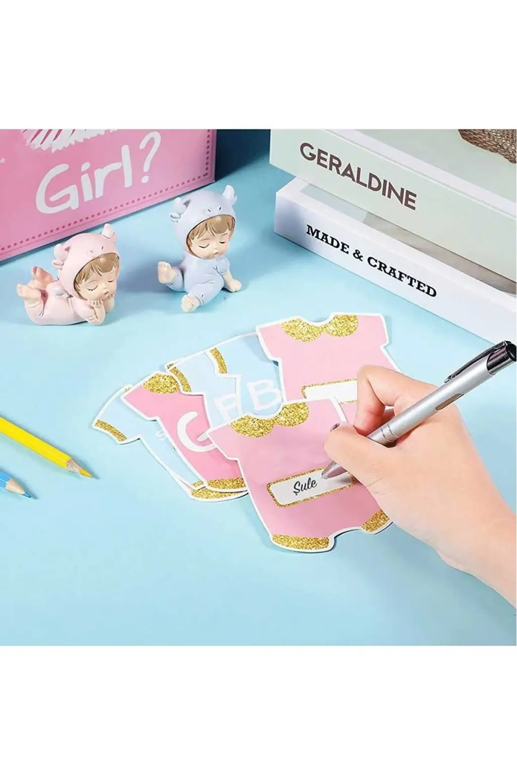 Paket içeriği 1 adet katlanabilir kutu , 25 adet mavi 25 adet pembe cinsiyet tahmin kağıdı bulunmaktadır.