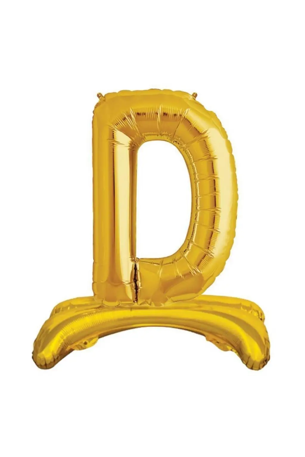 D Harfi Doğum Günü Gold Renk Folyo Ayaklı Balon 32" 70 Cm D Harf Folyo Balon Gold Konsept