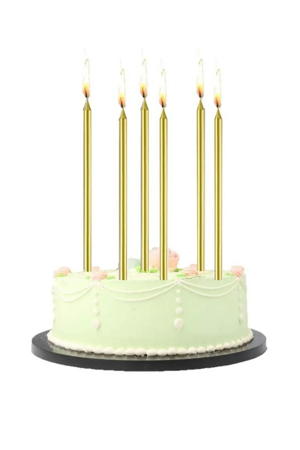 Dekoratif Uzun Pasta Mumu Gold Renk 6lı 18 cm İnce Uzun Pasta Mumu
