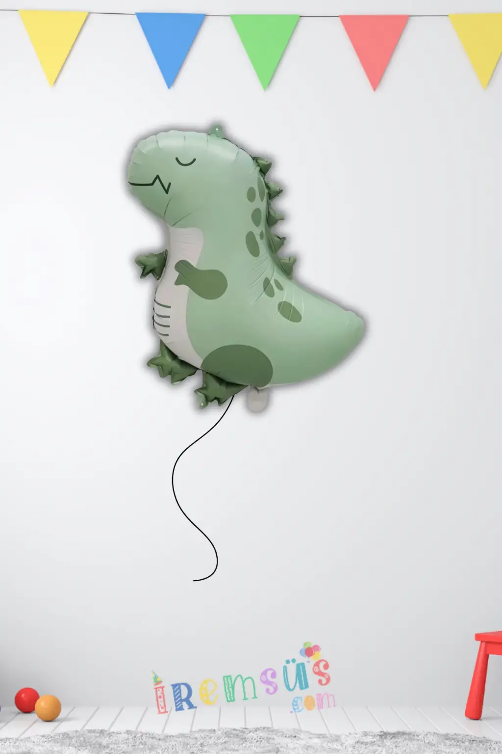 Dinazor Figür Retro Yeşil Renk Folyo Helyum Balon 59 cm Satin Renk Dinazor Şekilli Folyo Balon
