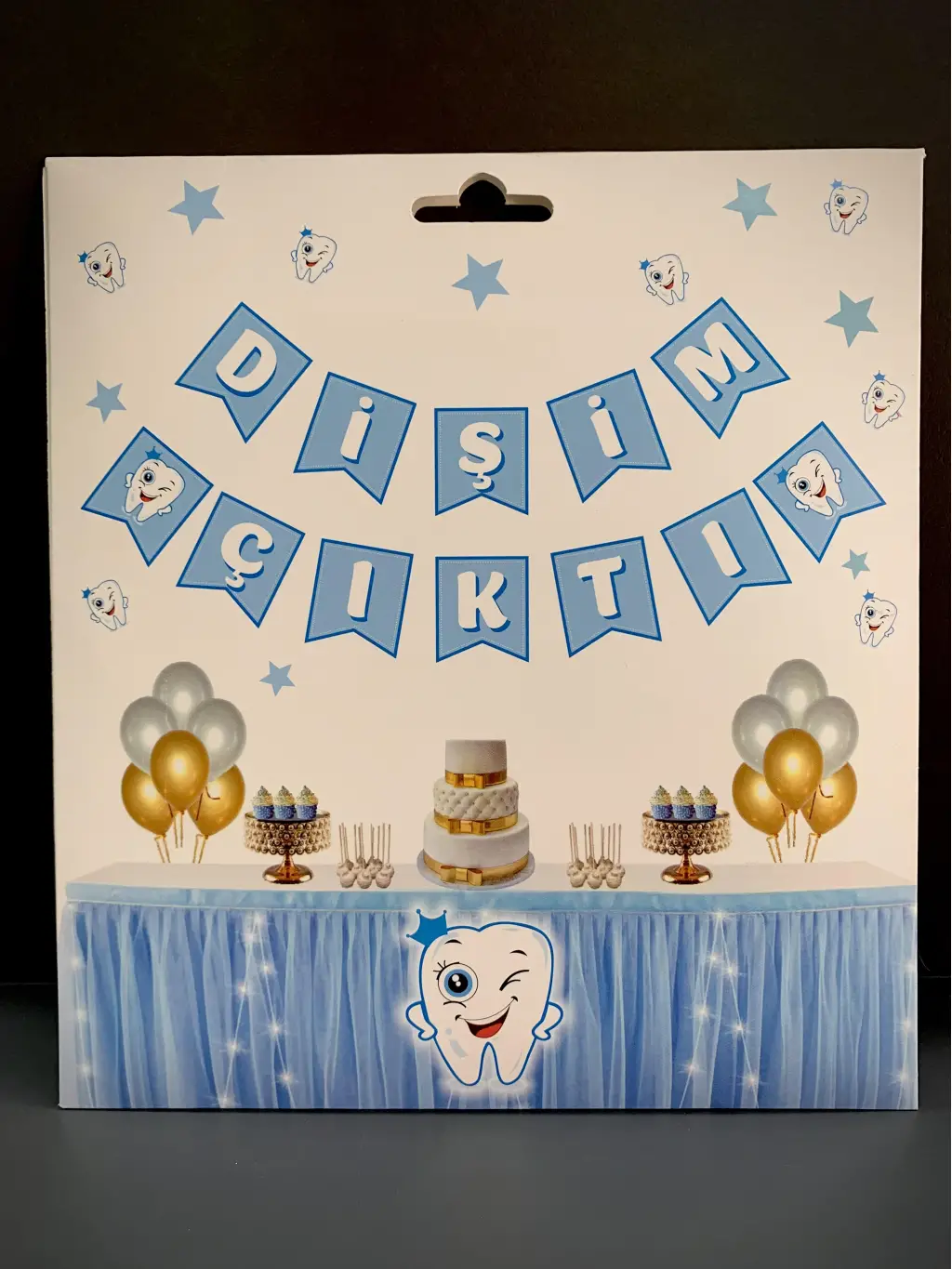 Erkek Bebek Dişim Çıktı Banner Yazı Mavi Renk 190 cm Dişim Çıktı Partisi Diş Buğdayı Süsü