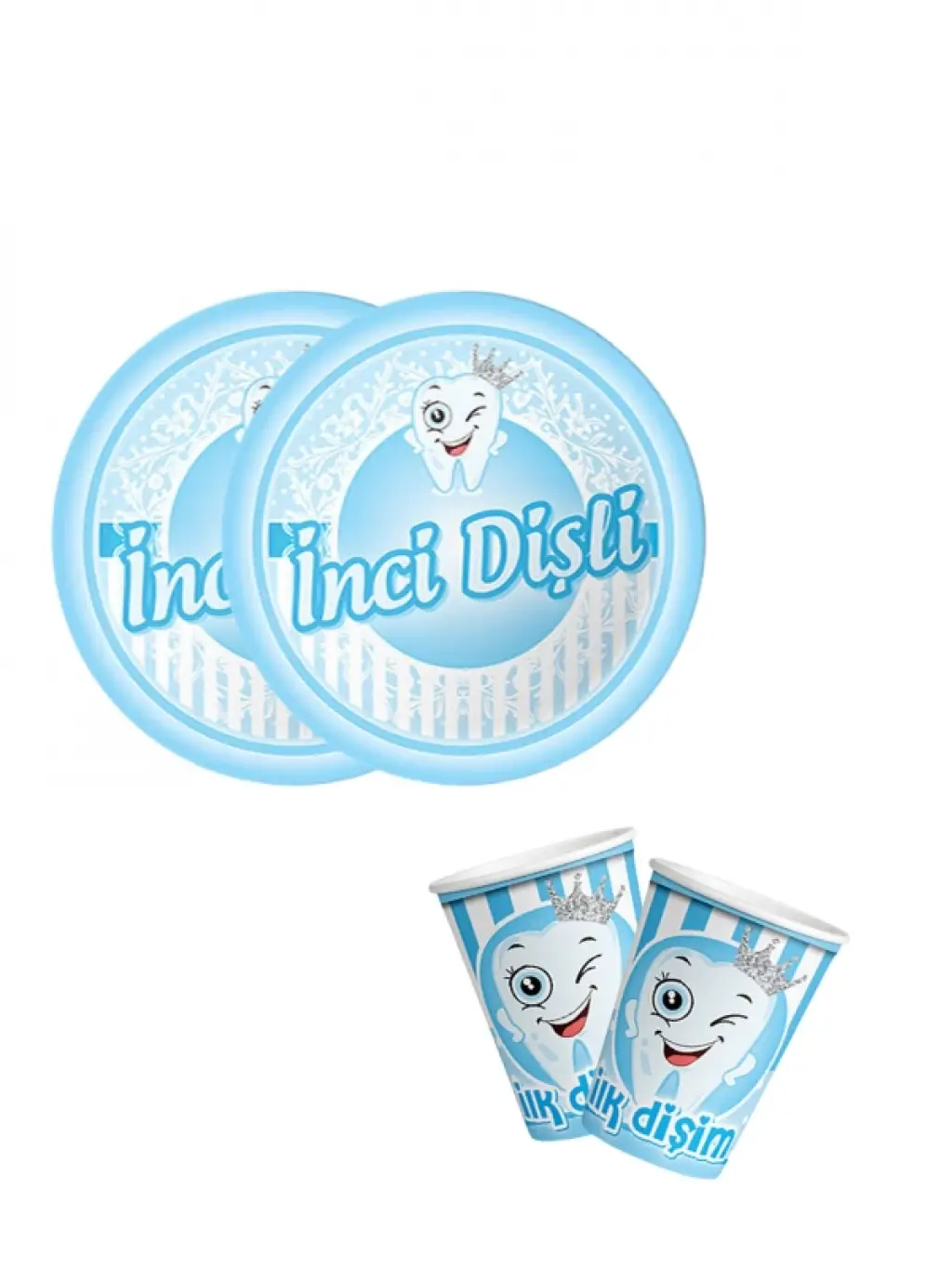 Erkek Bebek İnci Dişli Tabak Bardak Set 8li Dişim Çıktı Partisi Diş Buğdayı Süsü