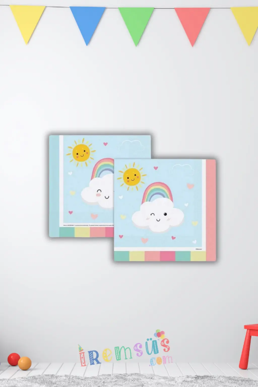Gökkuşağı Baskılı Renkli Doğum Günü Partisi Peçetesi 16 Lı Bulut Tema Baskı Peçete