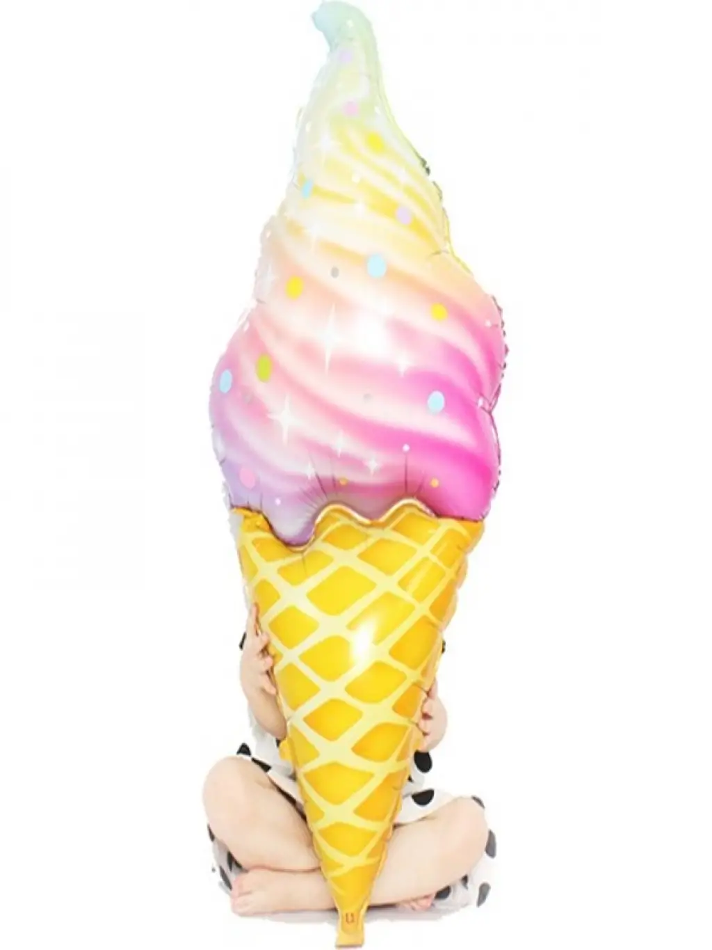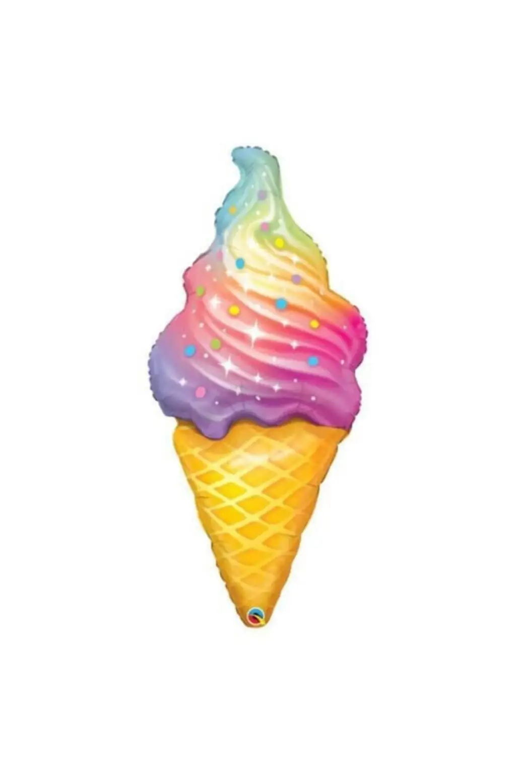 Gökkuşağı Renkli Dondurma Şekilli Folyo Helyum Balon 47'' Doğum Günü Balonu 1 metre