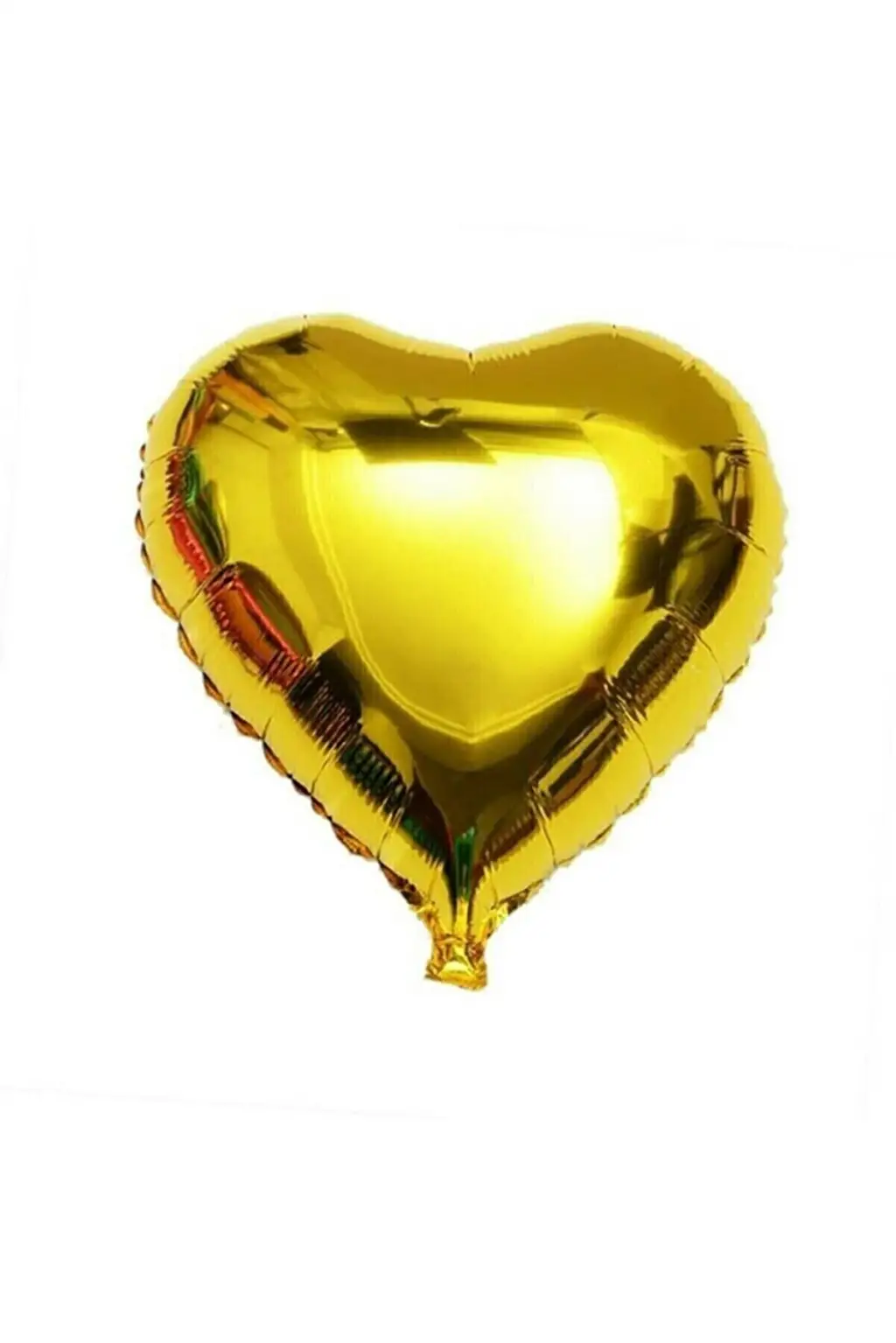 Gold Renk Folyo Kalp Helyum Balon 18" 45 cm 1 Adet Altın Renk Süsleme Balon