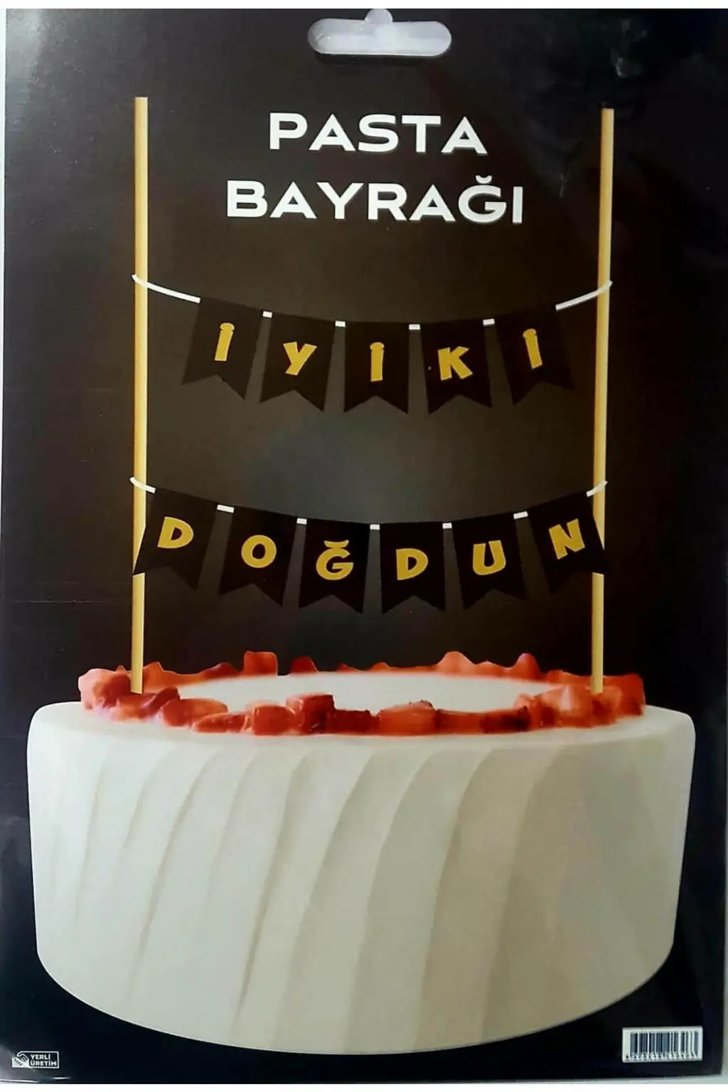 Gold Renk Iyiki Doğdun Yazılı Siyah Pasta Bayrağı Banner Flama
