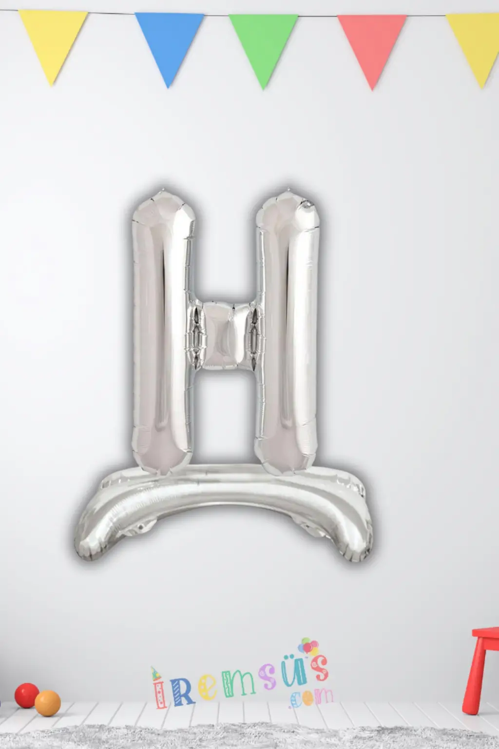 H Harfi Ayaklı Folyo Balon Gümüş Renk 32"