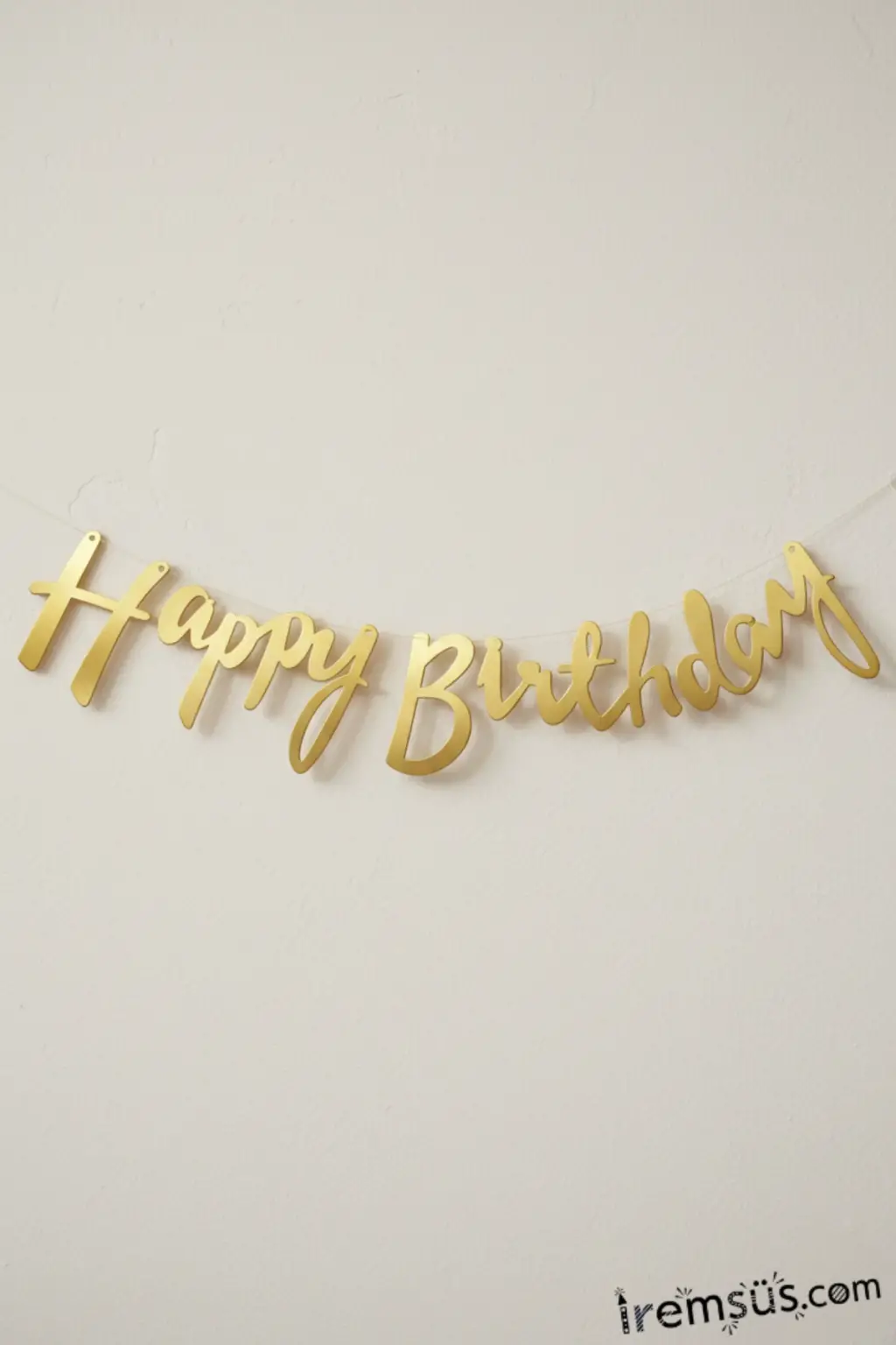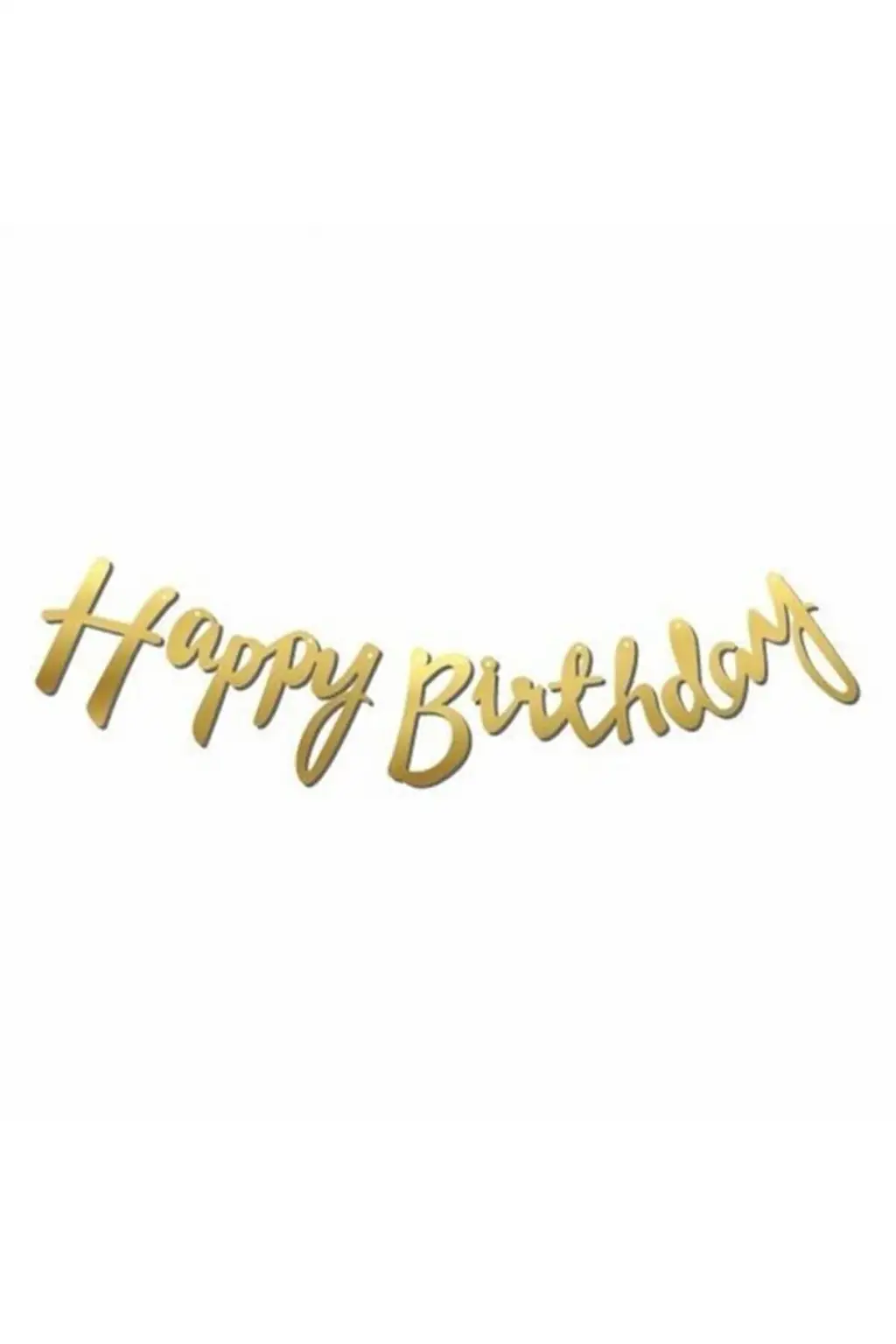 Happy Birthday Yazılı Kaligrafi Banner Yazısı Gold Renk Doğum Günü Partisi 110 cm