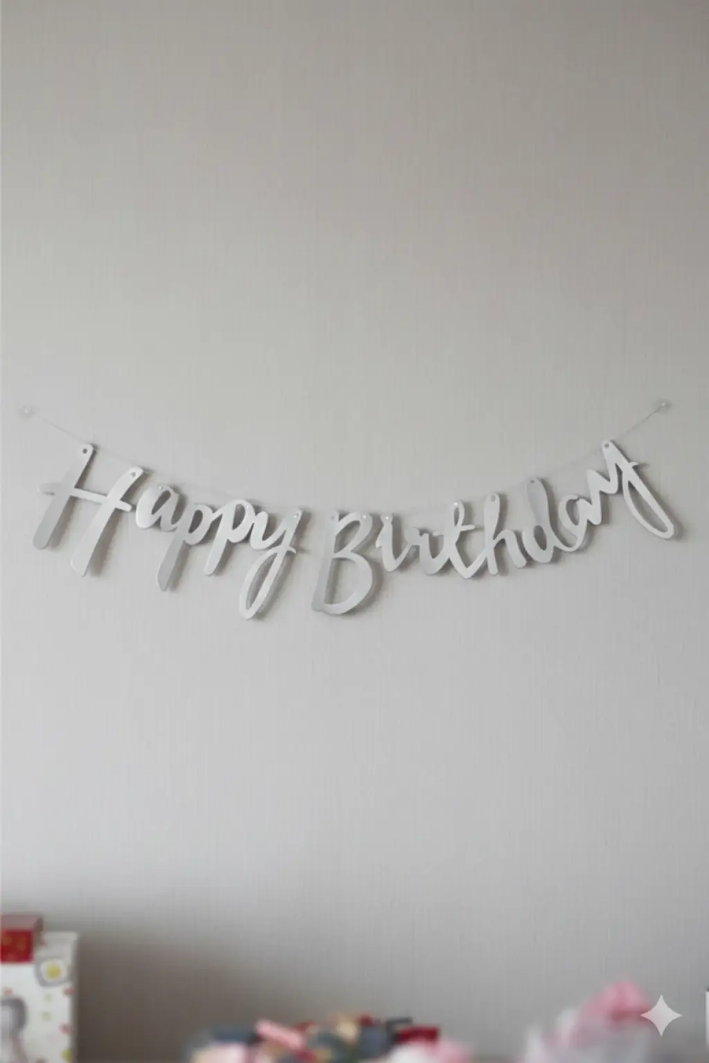 Kaligrafi Banner Gümüş Happy Birthday