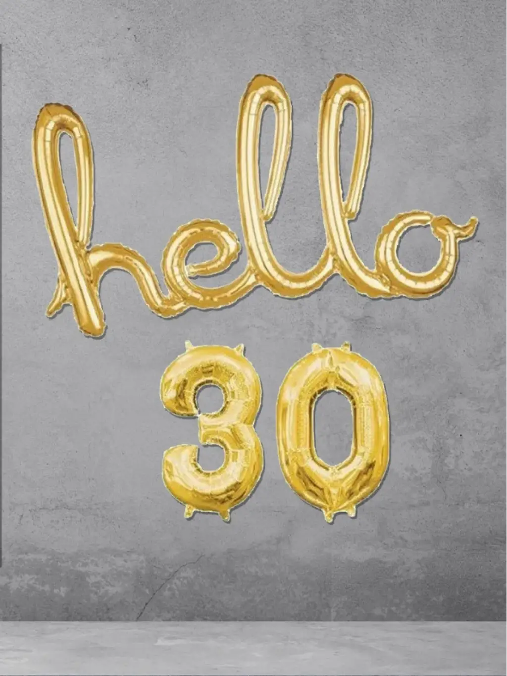Hello 30 Yazılı Gold Renk Doğum Günü Folyo Balon Seti 30 Yaş Doğum Günü Partisi Kutlama