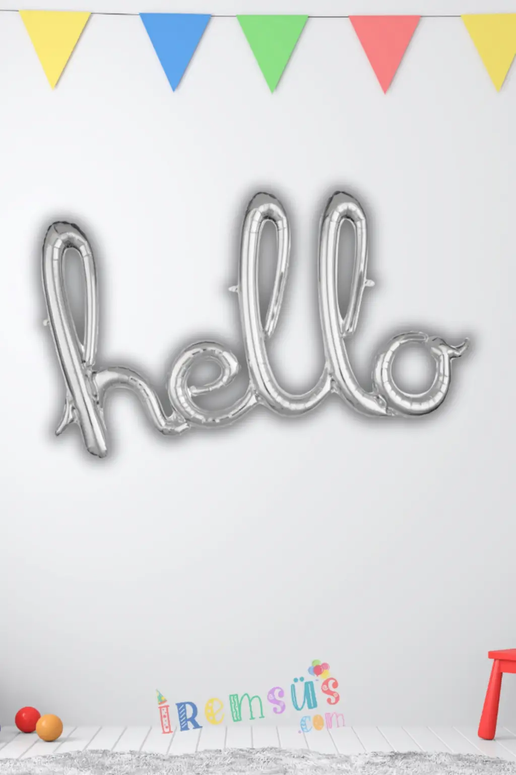 Hello Yazılı Birleşik Gümüş Renk Folyo Balon 100cm Balon Süslemesi